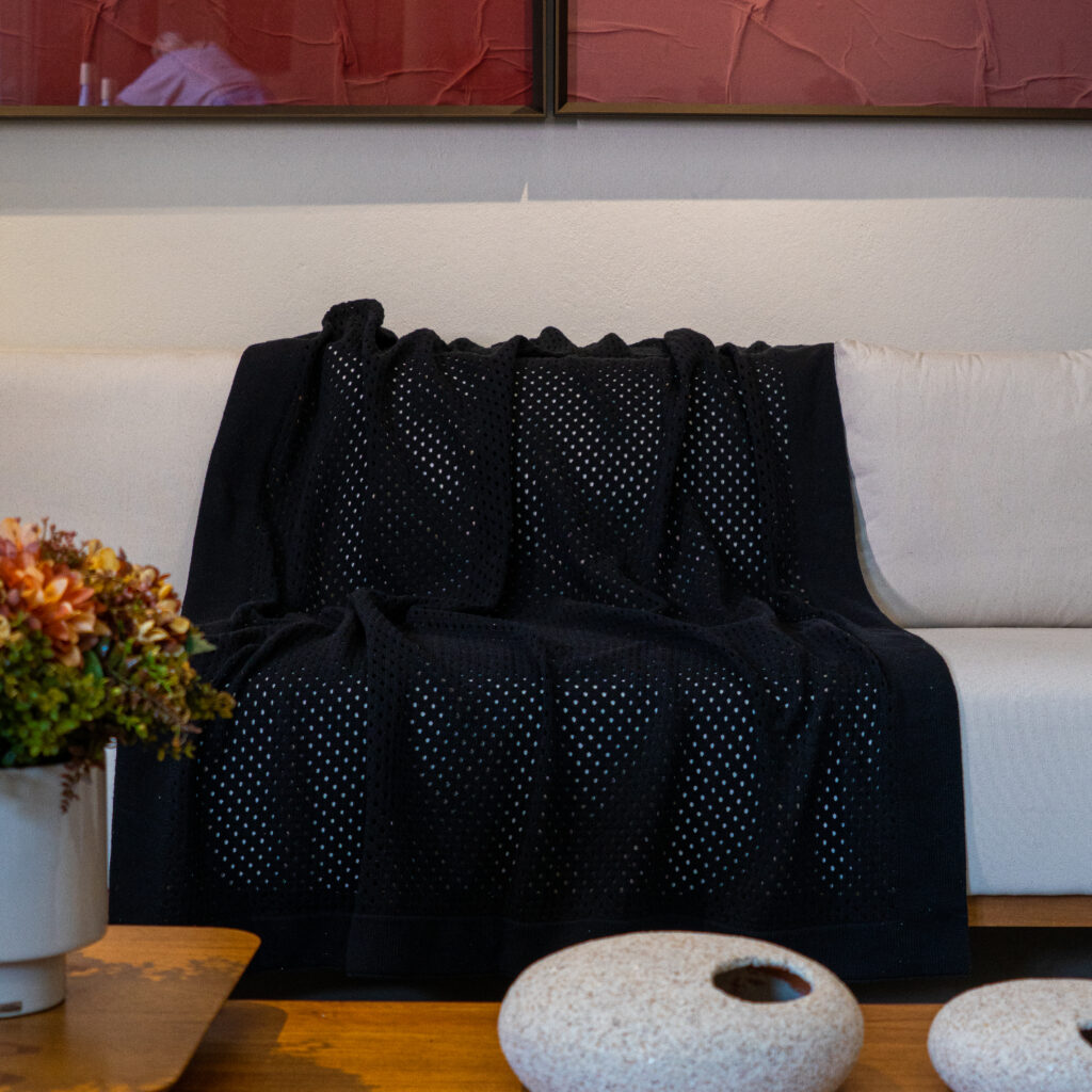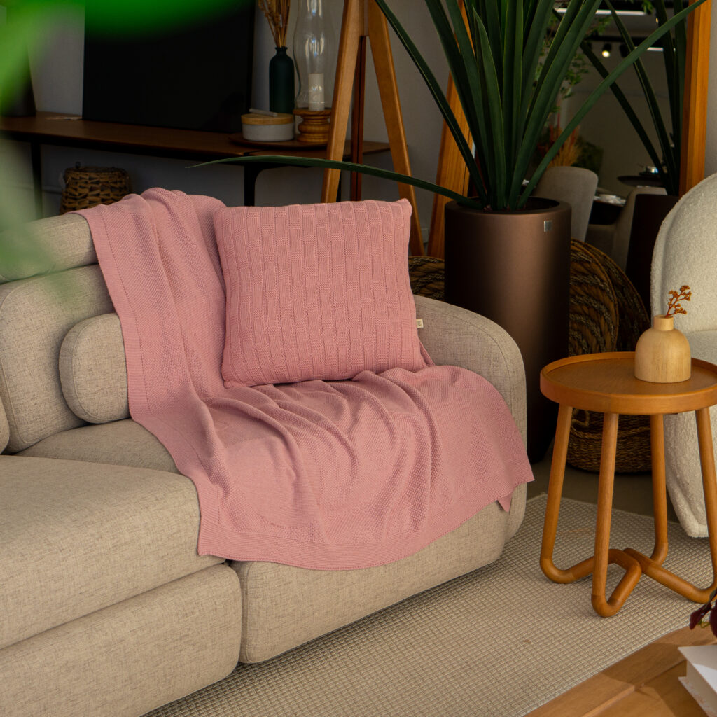 Com trama delicada e toque suave, a Manta Luiza é ideal para compor sofás, camas e poltronas com aconchego e estilo. Feita em tear com fio sustentável (85% algodão), une conforto, beleza e praticidade.