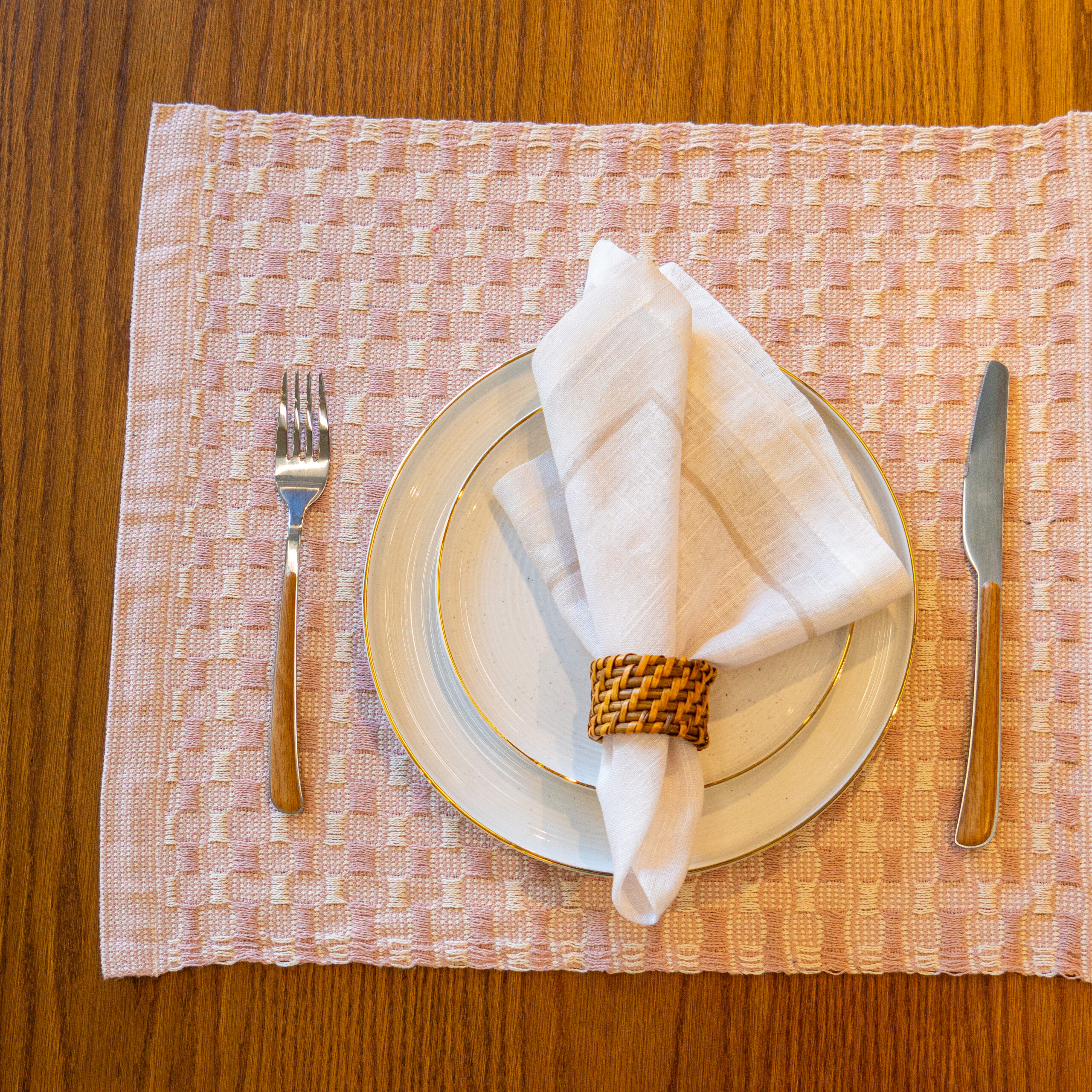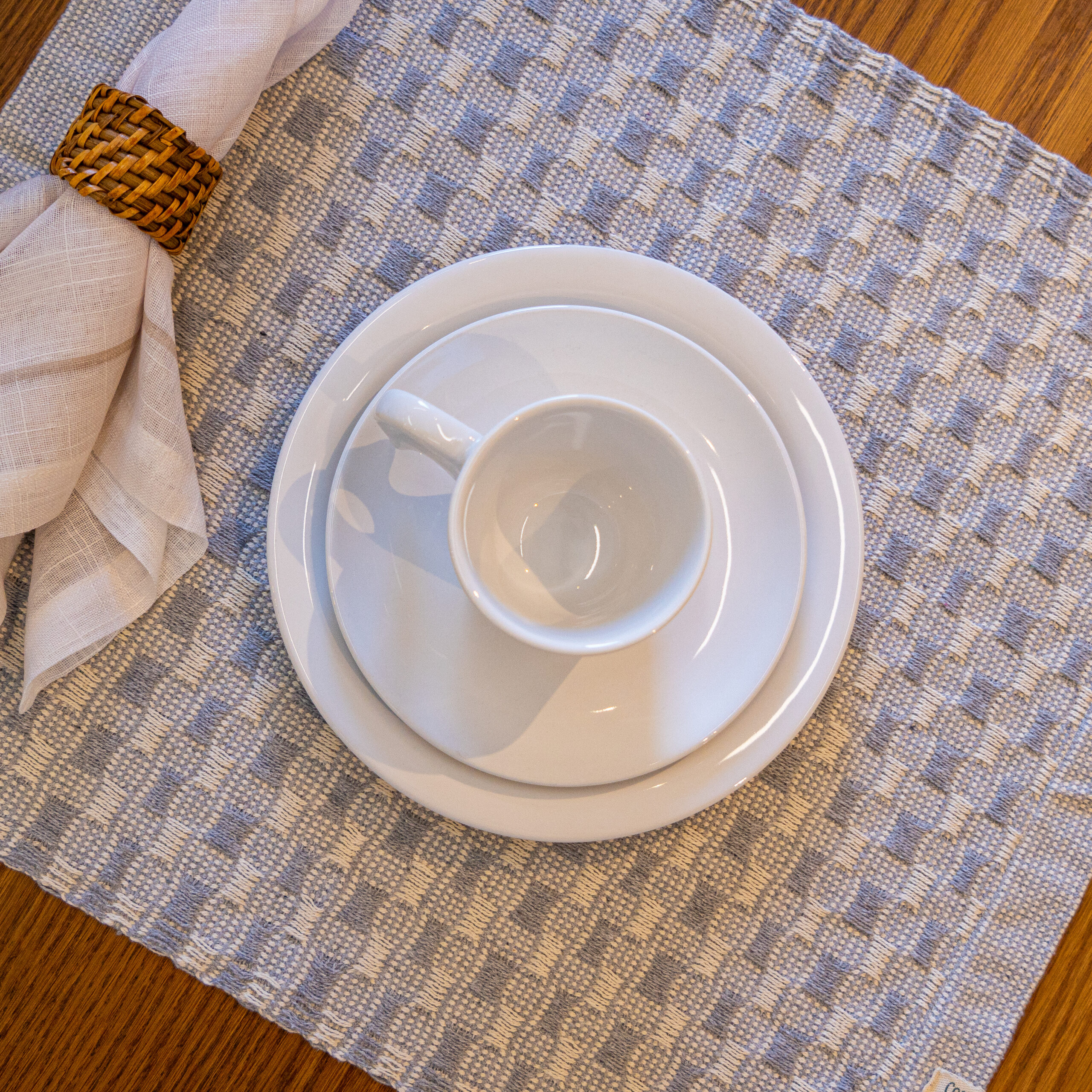 Artesanal em tear e feito com fio sustentável (85% algodão), o Jogo Americano Olga traz aconchego e modernidade para a sua mesa de forma prática e elegante.