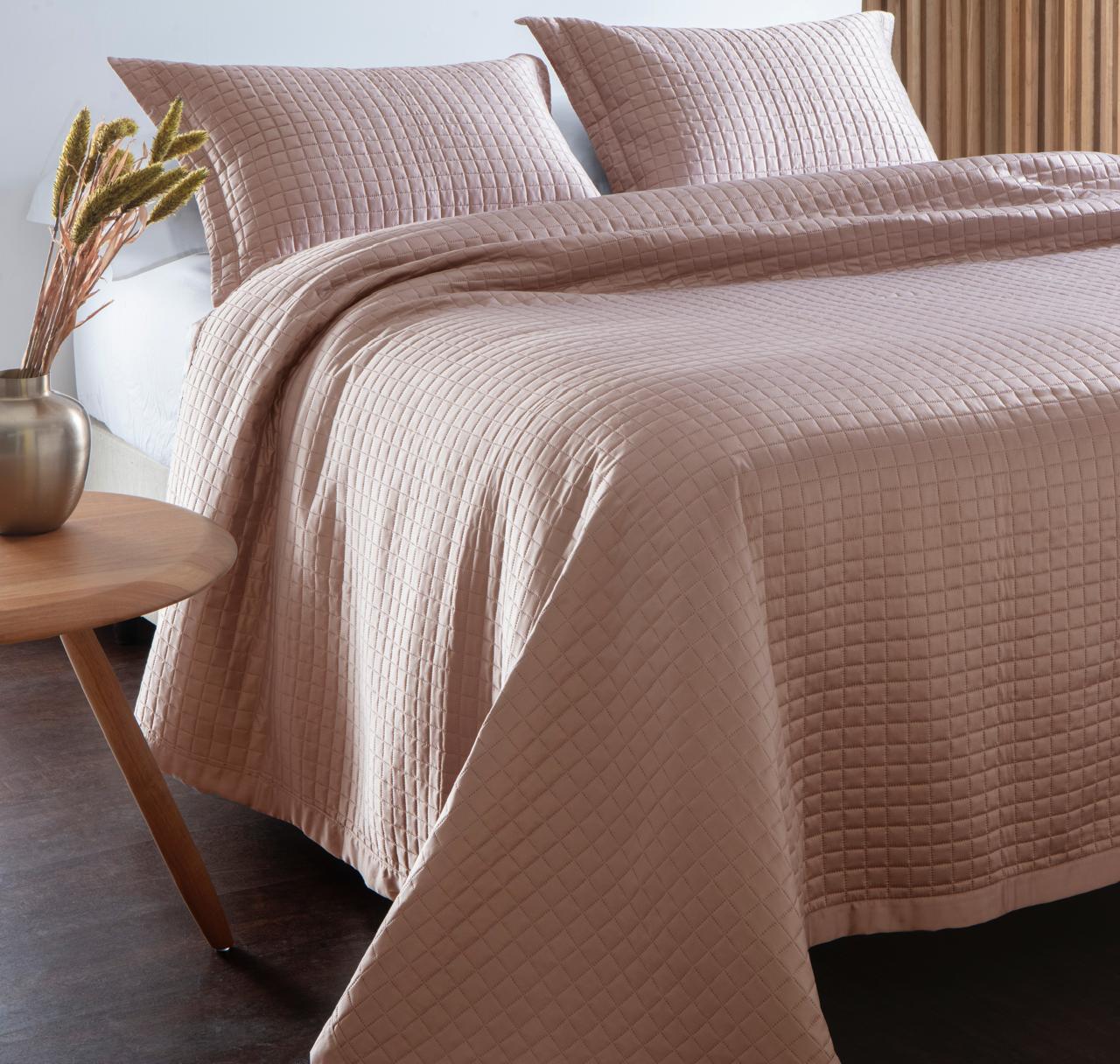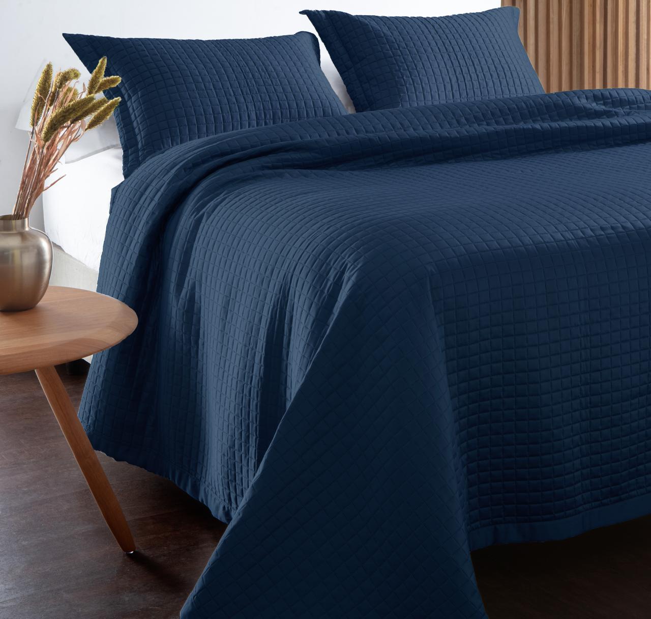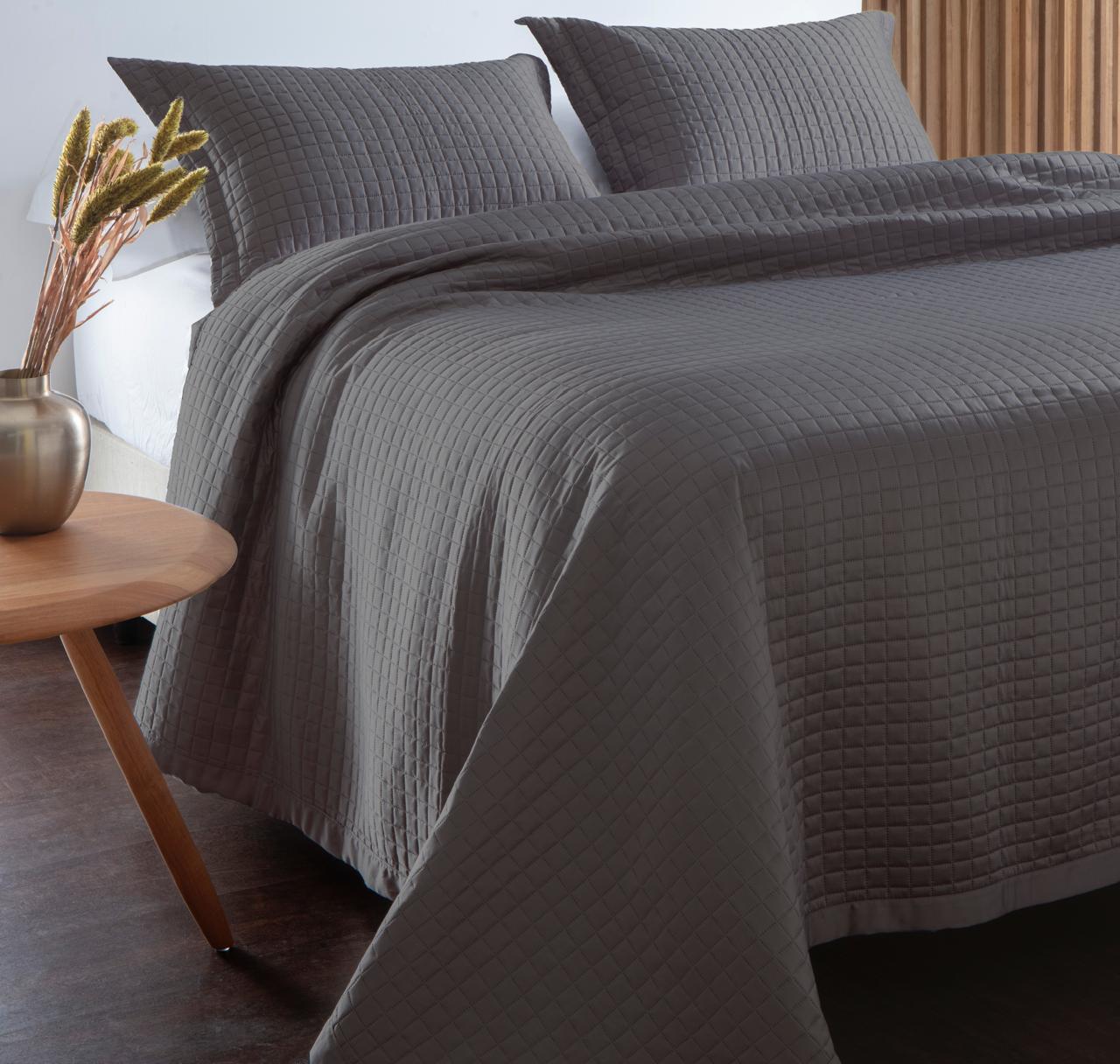 Kit Colcha Sidney – Praticidade e elegância para o seu quarto. Confeccionado em tecido Hypercal 200 Super Soft, com enchimento 100% poliéster, possui toque acetinado, acabamento matelado, é resistente ao desbotamento, anti pilling e não necessita passar. Acompanha porta-travesseiros para completar a composição.